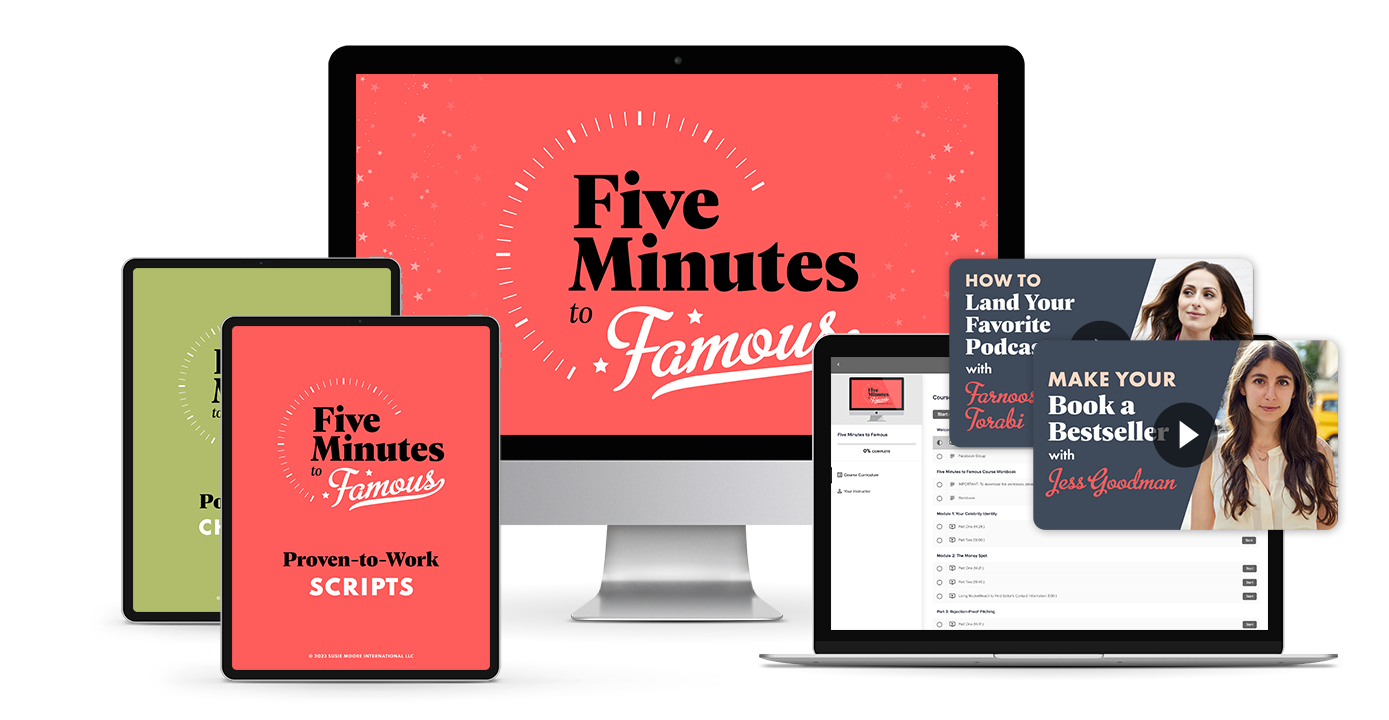Five Minutes to Famous is the system I’ve personally used to get featured in outlets like Marie Claire, The Huffington Post, the BBC, MindBodyGreen, the Today show, Forbes, Business Insider, and more.